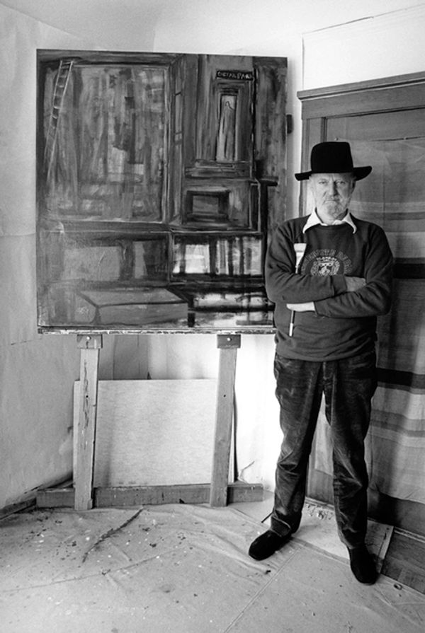 Ferlinghetti in his studio at Hunters Point Shipyard, 1998. By photographer Chris Felver.